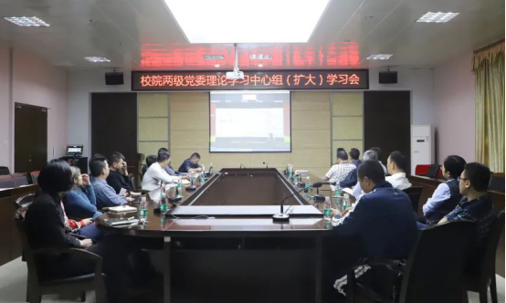 11月11日下午,时搏官方网页版举行校院两级党委理论学习中心组(扩大)学习会。校领导李旭、周勇军、吴勇,全体中层干部及各二级学院党总支书记、副书记参加学习会。
