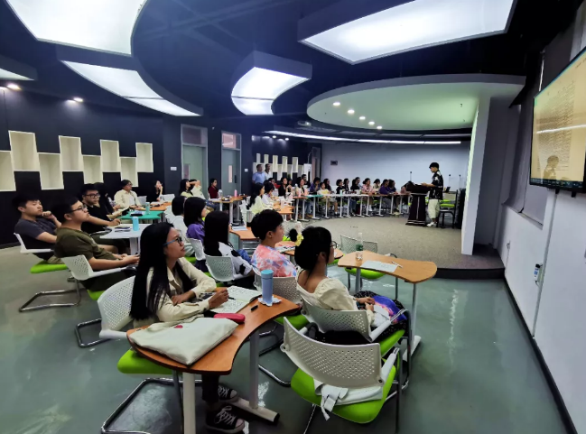 开班仪式结束后,陈长海主管为全体学员作培训课程的第一次授课,讲授了电商企业文化、服务意识宣导、岗位职责等方面的内容。