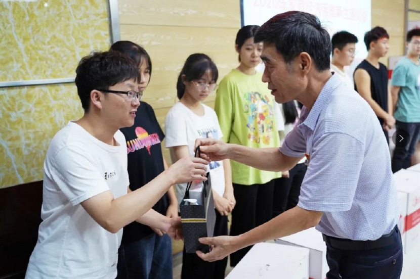 会上,校领导分别为同学们送出了“一床过冬的棉被、一张爱心电话费兑换劵、一个月困难补助、一份防疫礼包”等“爱心大礼包”。