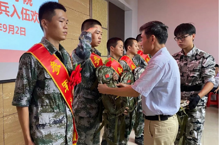 退伍老兵代表彭瑞、林海滨、谢发壤等先后分享服役期间的心路历程,对即将踏上新征程的新兵战友们送上诚挚祝福;新兵家长代表苏招愿表示,定会全力支持孩子履行兵役义务,全力支持国防事业,为祖国、为家乡、为学校争光。