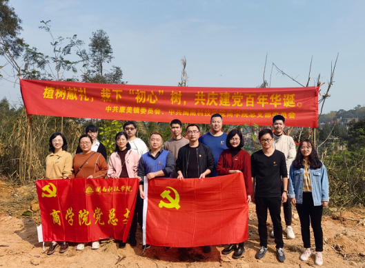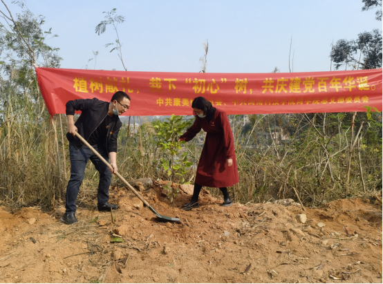 今年3月12日是我国第43个植树节。时搏官方网页版商学院党总支与康美镇党委联合开展“植树献礼,栽下‘初心树’,共庆建党百年华诞”主题党日活动,前往校地合作单位兰田村栽树绿化。