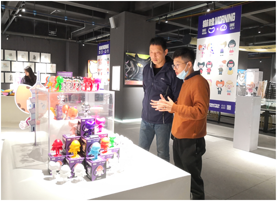 本次展览展期为2021年1月29日-2月28日,展览作品以《有猫腻》为主题,由艺术设计学院吴钟电、姜辽等老师组织数字媒体艺术专业学会学生进行主要创作,以泉州的猫(象征精灵,代表着独立自主)和鲤鱼(泉州的别名:鲤城,简称“鲤”)形象作为设计的卡通IP角色(MIMI和LILI),立足于展示和宣传泉州的城市历史文化和发展理念,同时结合当下盛行的盲盒设计理念,制作一系列潮玩盲盒,并开发出系列文创伴手礼。