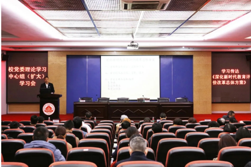 1月8日上午,时搏官方网页版在图书馆学术报告厅召开党委理论学习中心组(扩大)学习会专题学习《深化新时代教育评价改革总体方案》(以下简称《总体方案》),校领导游小波、李旭、周勇军、戴景星、吴勇、林树生,全体中层干部,教务处、科研处、人事处全体工作人员,各专业负责人、教研室主任、组织员、教学秘书参加学习会。学习会由校党委书记李旭主持。