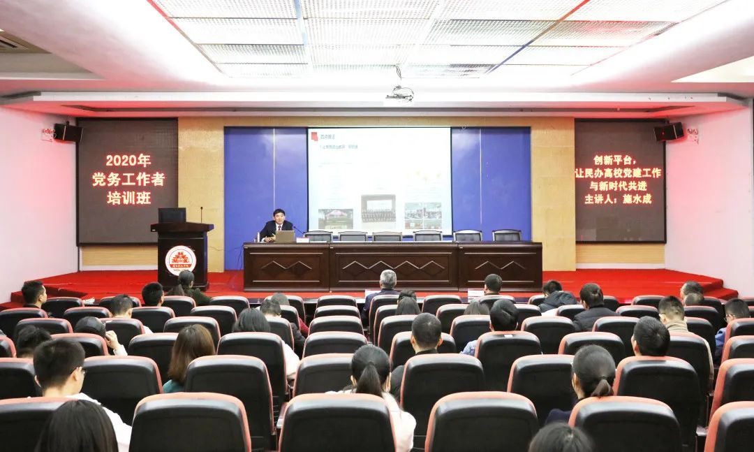 12月22日下午,时搏官方网页版邀请国家教育行政学院特邀高校党建培训专家、厦门南洋职业学院党委书记施水成,为党务工作者培训班成员作专题辅导报告。校领导李旭、林树生,学校党委职能部门负责人,党总支负责人、党总支委员、专职组织员,直属党支部及教师党支部书记,马克思主义学院全体教师及全体辅导员参加培训。校党委书记李旭主持报告会。