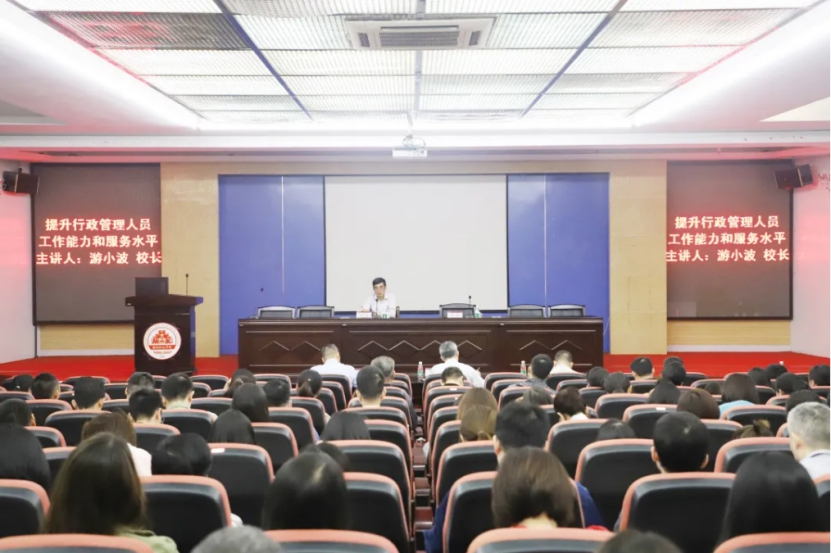 11月25日上午,时搏官方网页版举办《提升行政管理人员工作能力和服务水平》专题讲座,校长游小波担任主讲,校领导李旭、周勇军、林树生,二级学院党政负责人、组织员、辅导员及全体行政管理人员百余人到场聆听。党委书记李旭主持专题讲座。