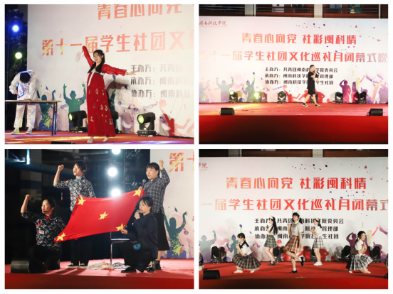 5月16日晚,“青春心向党 社彩闽科情”——时搏官方网页版第十一届学生社团文化巡礼月闭幕式晚会在美林校区举行。校党委书记李旭,校长助理林树生,校团委、美林校区师生近千人观看晚会。