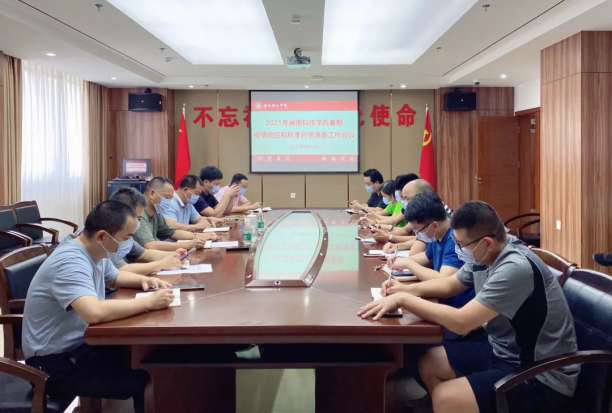 周勇军指出,当前全球疫情仍在蔓延,特别是近期国内多个省份和地区相继出现本土疫情和零星多发病例,疫情防控压力不断加大,学校作为疫情防控的重要阵地,将面临更大挑战。他强调,一是思想认识要到位。对当前疫情防控工作,大家务必要提高思想认识,做足思想准备。要落实主体责任,履行好工作职责,坚决克服管理松懈、思想麻痹等厌战情绪,时刻绷紧疫情防控这根弦,始终把师生生命健康摆在第一位,切实把疫情防控各项任务要求落到底、落到边、落到位。二是防控措施要到位。严格落实好上级及学校疫情防控各项要求,跟踪掌握全校师生员工健康状况,严格落实“日报告”“零报告”“每日健康打卡”制度;严把校园校门关,严格执行进校“三码联查”制度,坚决防止校外疫情输入,扎扎实实构筑好学校疫情防控的各道坚固防线。三是开学准备要到位。各相关部门要及早研究制定2021年秋季开学工作方案和应急预案,持续完善学校“两案九制”,做好物资保障、环境消杀、应急演练等各项准备工作,加快推进疫苗接种工作,为秋季开学做好全方位准备。四是宣传引导要到位。落实健康教育制度,加强对师生的心理疏导工作以及疫情防控宣传信息发布,教育引导师生保持良好生活习惯,认真做好个人防护,坚持非必要不前往国内中、高风险地区,严防严控,从自身做起,树立大局意识,服从指挥,不折不扣落实各项疫情防控措施,确保秋季开学顺利进行。