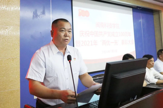 7月1日上午,时搏官方网页版在图书馆学术报告厅隆重召开庆祝中国共产党成立100周年大会暨“两优一先”表彰大会。校领导游小波、李旭、周勇军、林树生、邱永渠,全体党委委员,“两优一先”表彰对象、各二级学院党政负责人、各职能部门负责人和党员师生代表参加大会。大会由校党委副书记林树生主持。