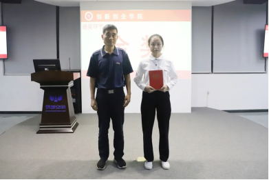 校长游小波为获得金奖的《释源科技》项目颁奖