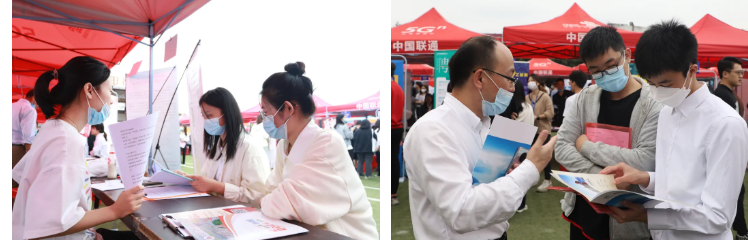 招聘会现场秩序井然,同学们手持简历,穿梭于各招聘单位之中,就个人能力、工作内容、薪资待遇、发展前景等方面与用人单位进行交流,积极了解企业的文化背景,寻找自己心仪的就业岗位。