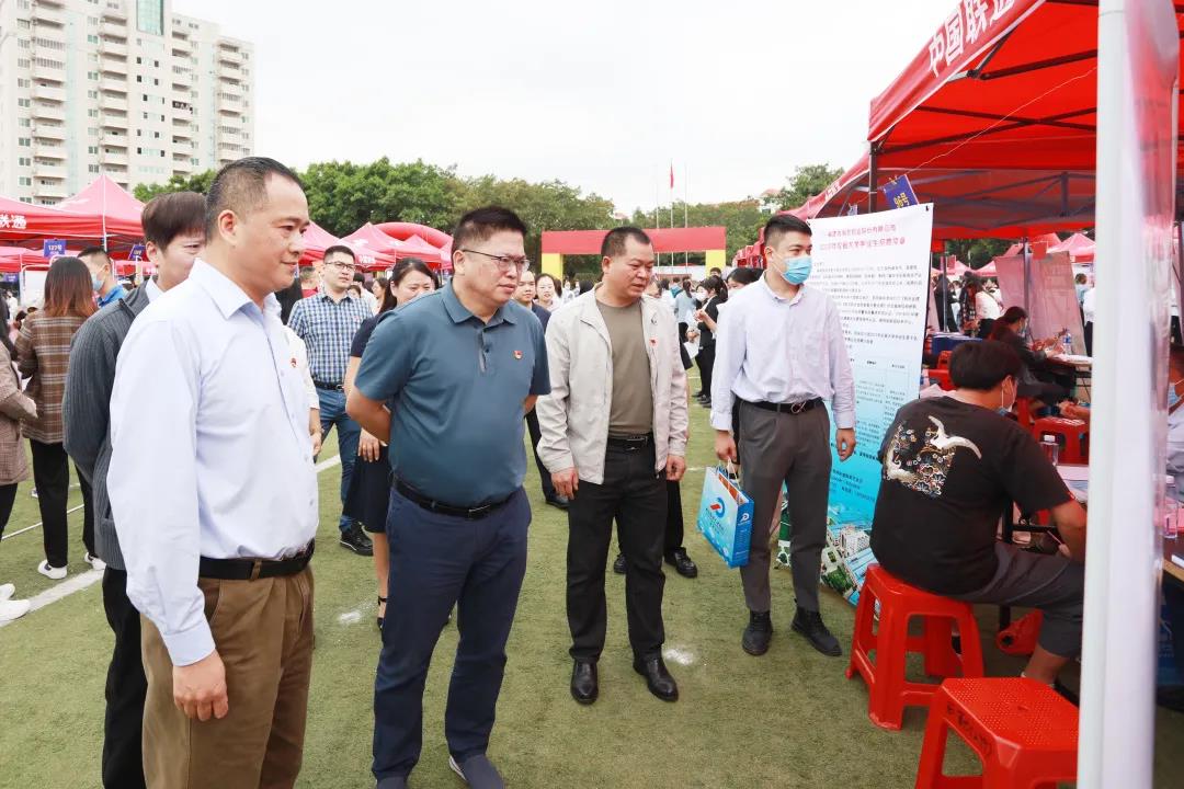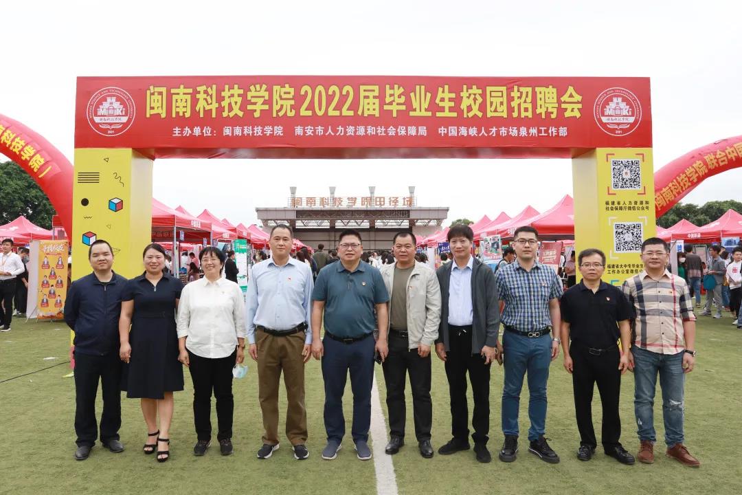南安人社局局长黄志军、副局长杨佩艺,南安市就业和人才人事公共服务中心主任苏毅军,中国海峡人才市场泉州工作部主任郑建意、人才招聘部主任黄晓雨,校领导周勇军、林树生等莅临现场指导工作,并亲切慰问参会的企业和求职学生。