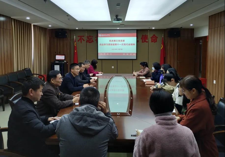 副校长邱永渠:全校上下要切实提高政治站位,把学习贯彻省第十一次党代会精神作为当前和今后一个时期的重要政治任务,统一思想行动,凝聚智慧力量;要将思想和行动统一到大会精神上来,结合学校实际,找准切入点、结合点,以时不我待、只争朝夕的精神,布局好学校近期和远期的各项工作,努力把党的教育事业做好,坚持执行立德树人根本任务,切实做到为党育人、为国育才。