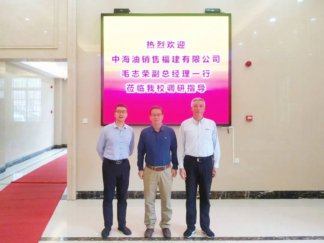 5月12日上午,中海油销售福建有限公司副总经理毛志荣,高级主管强英杰一行来校交流调研,校党委书记李旭会见了毛副总经理一行。
