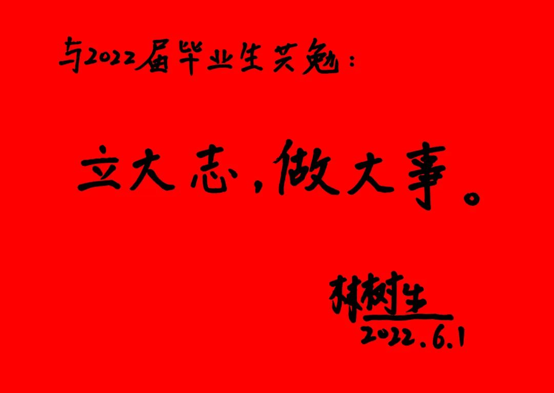 校党委副书记林树生为2022届毕业生寄语题词