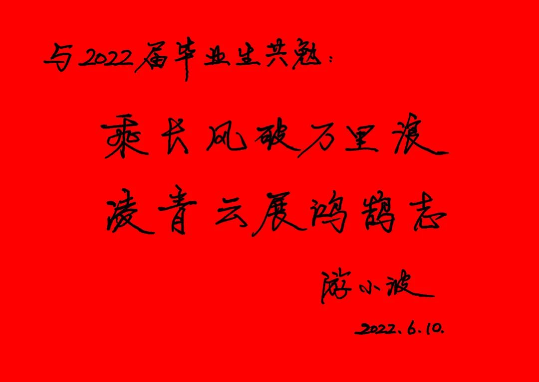 校长游小波为2022届毕业生寄语题词