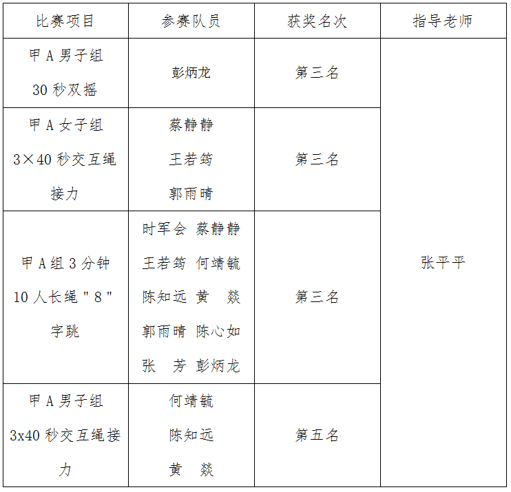 7月12日,由福建省教育厅、福建省体育局主办,武夷学院承办的福建省第十七届运动会(大学生部)跳绳项目圆满落幕。经过激烈角逐,时搏官方网页版选派的11名运动员在甲A组比赛项目中荣获3枚铜牌。