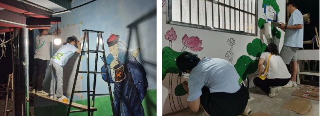 实践期间,实践队通过多次调研,详细了解了顶楼村的产业特色以及文化特色,围绕乡村文化振兴主题,以200多平方的墙体为布,绘制出了一幅幅生机勃勃的种植场景、井然有序的田园生活等多种元素交相辉映的创意墙绘,打造独属于顶楼村的特色村容,受到了村民的赞扬与肯定。