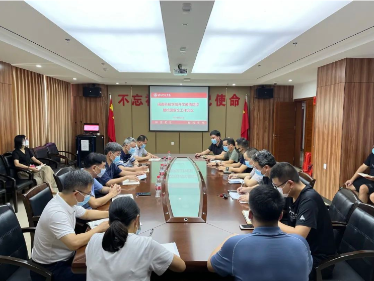 校长游小波、校党委书记李旭先后针对开学各项有关工作作了要求和部署。会议强调,秋季学期即将开学,抓好秋季开学的疫情防控和校园安全工作是重中之重。一是认识要高。切实提高政治站位,从严从细落实省市教育主管部门各项要求和措施,把全校师生的生命安全和身体健康放在第一位,坚决筑牢校园疫情防控网;二要求要严。树立底线思维,强化责任担当,切实担负起校园安全管理和疫情防控主体责任,牢牢守住安全防线,确保校园安全稳定;三工作要细。科学精准施策,对检查中发现的问题进行全面分析,研究制定解决方案,以高度的责任心和担当精神做好疫情防控常态化背景下的教育教学、安全管理、疫情防控等各项工作;四行动要实。各单位要按照“严、准、细、实”的要求,认真研究、统筹规划,明确任务清单和时间节点,加强部门协同联动,确保秋季学期正常、安全、有序开学。