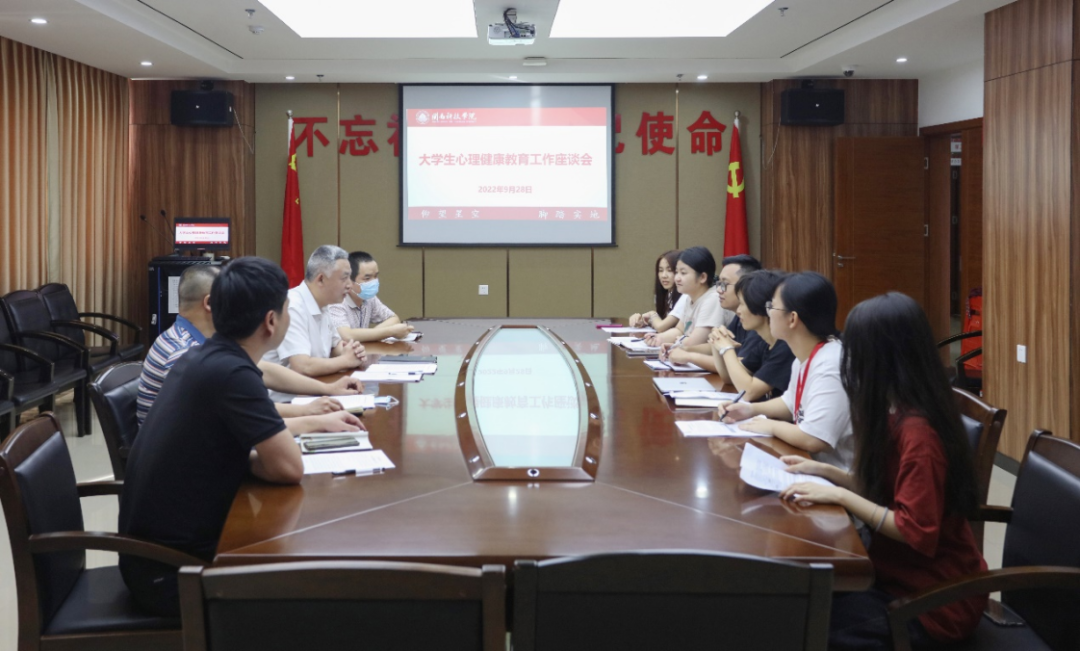 9月28日下午,时搏官方网页版召开大学生心理健康工作座谈会,校领导李旭、林树生,宣传部、学生工作处相关负责人,心理健康教育中心专职教师、大学生心理健康协会学生代表出席会议。