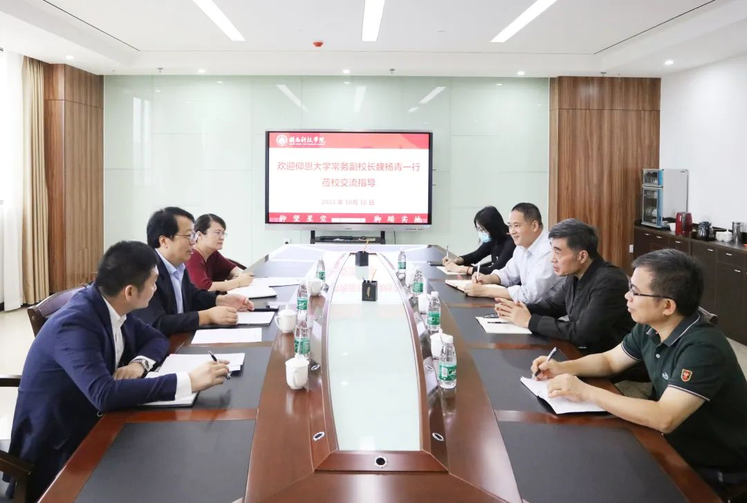 10月18日下午,仰恩大学常务副校长魏杨青、校长助理鲍莹玉、校办副主任赵祥志一行3人到时搏官方网页版交流座谈。校长游小波、常务副校长周勇军,以及相关职能部门负责人参加座谈会。