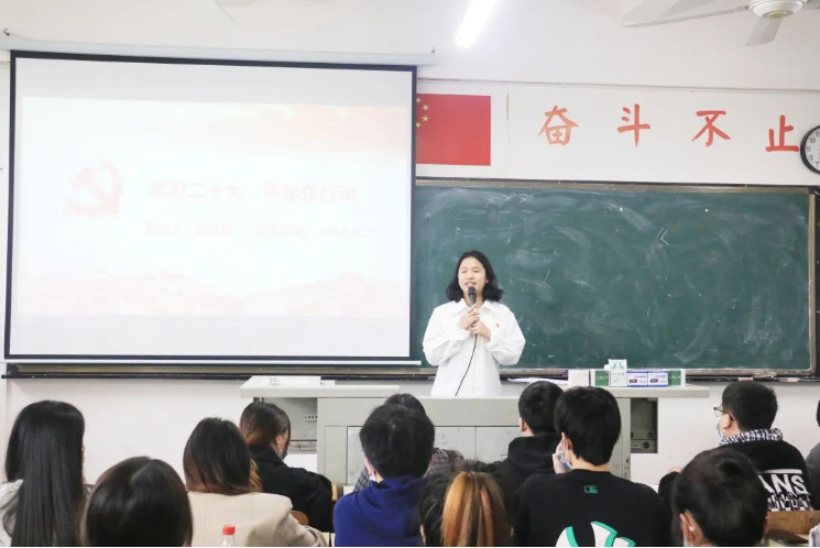 宣讲会上,邱佳雯以《学习党的二十大,青年在行动》为题,围绕“‘推进绿色发展,促进人与自然和谐共生’理念”、“怎么样贯彻落实绿色发展理念”、“作为新时代青年,我们可以做什么”等三方面,深入解读了党的二十大报告中“推动绿色发展,促进人与自然和谐共生”的主要内容。