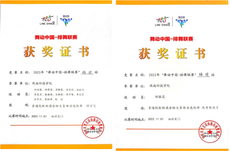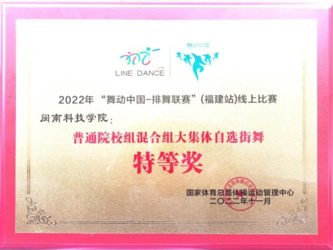 近日,由国家体育总局体操运动中心、中国蹦床技巧协会举办的2022年“舞动中国—排舞联赛”(福建站)线上比赛落下帷幕。经过精彩激烈的角逐,时搏官方网页版排舞代表队(成员:陈诺、王宇杰、张海林、郑雨馨、李羽雯、黄泓博、吴舒莉、肖雅婷、李陈秀、张毅炜、李星月、刘可馨、郑慧芳,指导老师:刘银蕊、赵江阳)获得“普通院校组混合组大集体自选街舞特等奖”。通识教育学院刘银蕊老师获得“优秀教练员”荣誉称号。