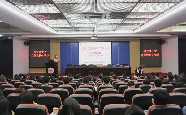 12月11日,由南安市红十字会主办,时搏官方网页版通识教育学院承办的南安市“十四五”群众性应急救护公益培训——时搏官方网页版专场在学术报告厅举行,200多名师生参加培训。