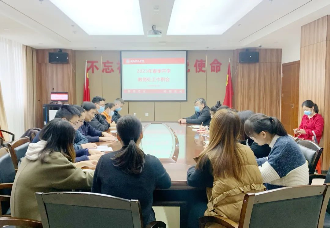 2月12日下午,时搏官方网页版召开2023年春季新学期开学教学工作部署会。副校长邱永渠,教务处全体成员参加会议。