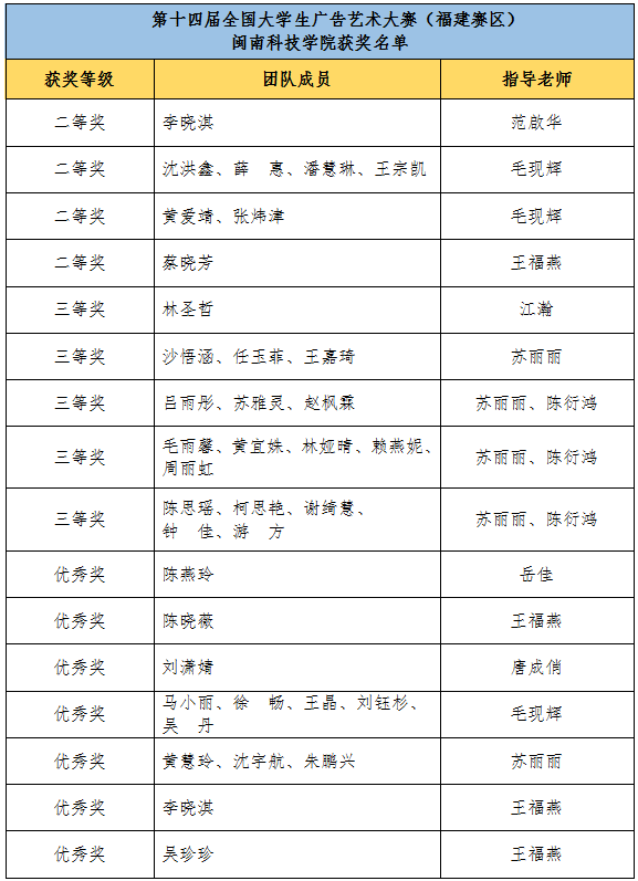 在2022年第十四届全国大学生广告艺术大赛福建赛区比赛中,时搏官方网页版学子斩获佳绩,获得16个省级奖项,包括二等奖4项、三等奖5项、优秀奖7项。