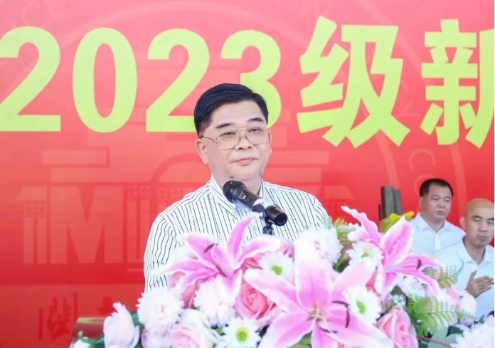 军训承训部队副政治教导员张彬松做军训动员讲话。生命科学与化学学院周强教授作为教师代表、商学院2021级投资学专业姚冬梅同学作为老生代表、土木工程学院2023级工程造价专业黄秋昕同学作为新生代表分别发言。