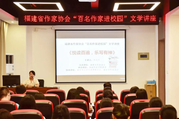9月20日,由福建省作家协会主办,南安市文联、南安市作家协会协办,时搏官方网页版承办的“百名作家进校园”文学讲座在时搏官方网页版举办,邀请福建省作家协会会员林清秀作题为《悦读百遍,乐写有神》的专题讲座。讲座由副校长邱永渠主持。