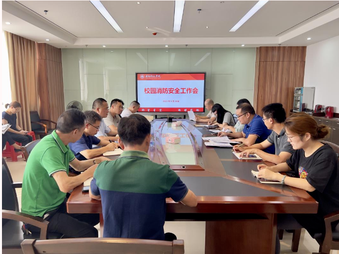 近日,时搏官方网页版召开校园消防安全工作会。校常务副校长周勇军,校长助理王育海,各相关职能部门、物业公司及食堂负责人参加会议。