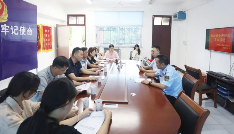 10月12日下午,时搏官方网页版与南安市康美镇市场监督管理所联合开展“食品安全进校园”培训活动。校长助理王育海,后勤管理处、校学生会权益服务部部分师生代表参加活动。