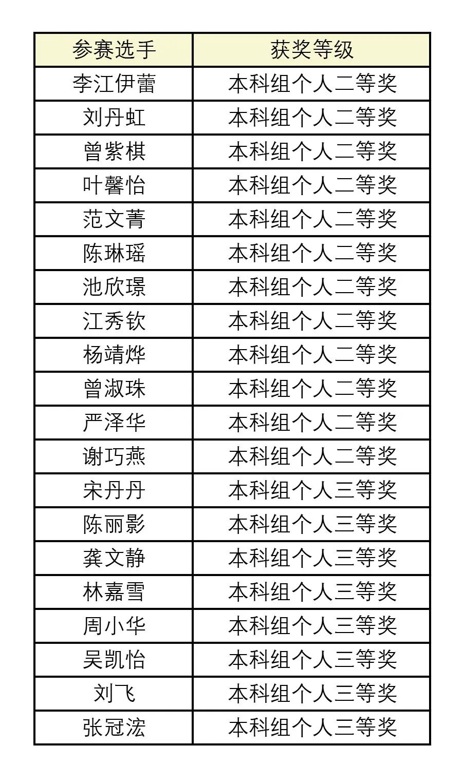 个人获奖名单