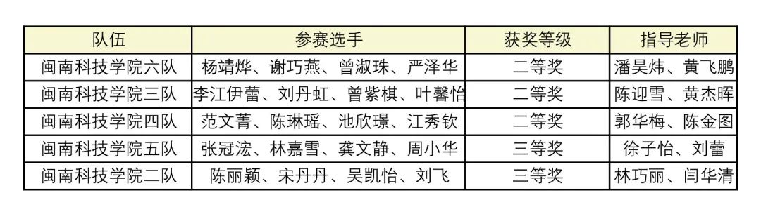 团体获奖名单