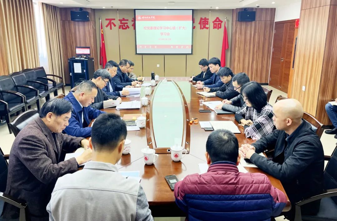 校党委书记李旭,常务副校长、校纪委书记、董事长助理周勇军分别领学,中心组成员结合自身学习情况和工作实际依次发言,交流学习心得和感受。