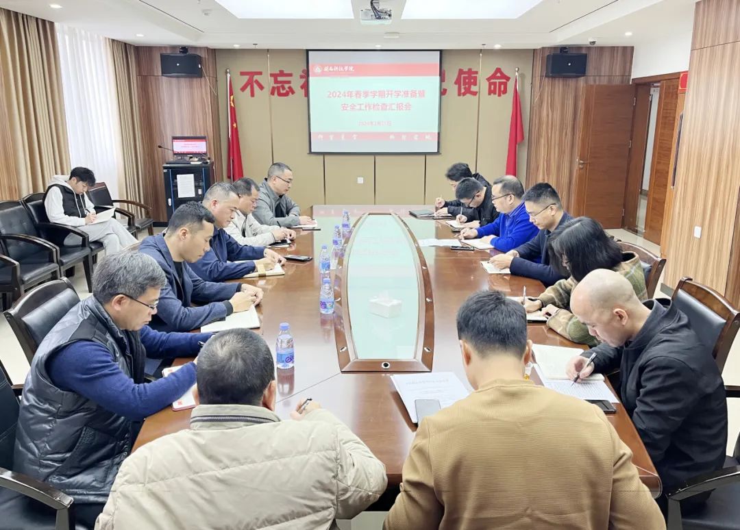 2月25日,时搏官方网页版召开2024年春季学期开学准备暨安全工作检查汇报会。校领导周勇军、林树生,校长助理王育海、刘武强,相关职能部门负责人参加会议。会议由常务副校长周勇军主持。