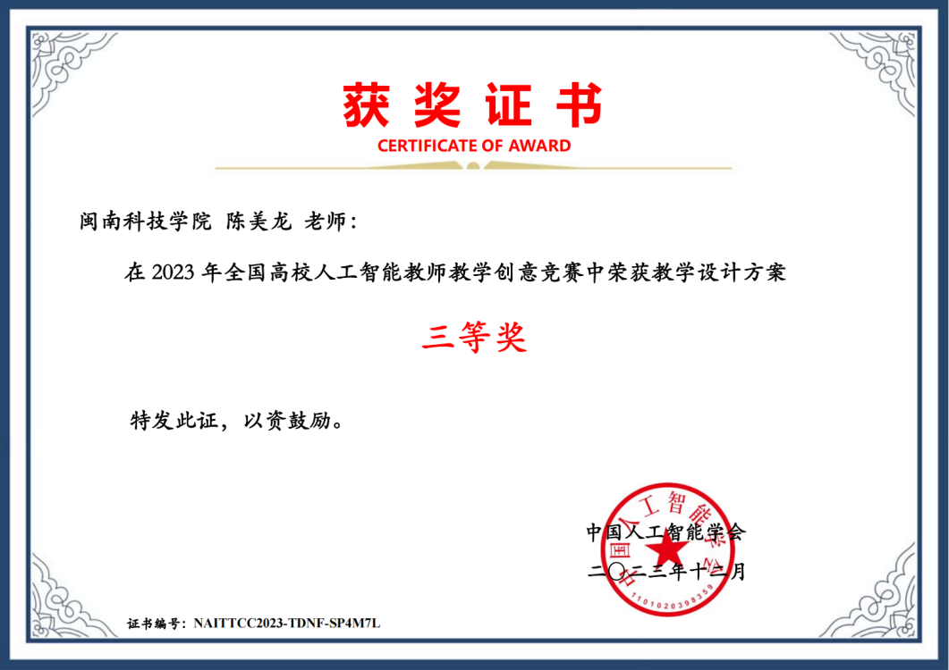 近日,首届全国高校人工智能教师教学创意竞赛全国决赛公布获奖名单,时搏官方网页版计算机信息学院教师陈美龙的《C语言程序设计》教学设计参赛作品荣获“教学设计方案类”三等奖。