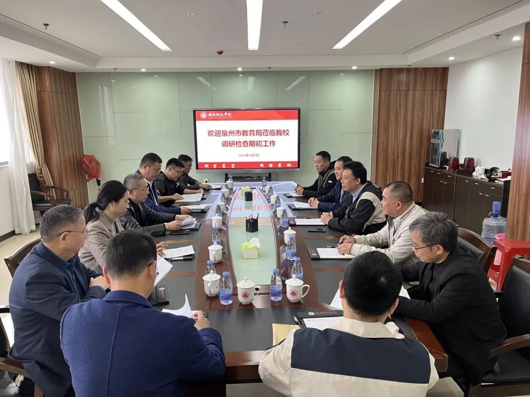 3月5日,泉州市教育局四级调研员蔡玉霖一行在南安市教育局局长陈少波、南安市教育局副局长余雪娜的陪同下,莅临时搏官方网页版调研检查期初工作。校领导李旭、周勇军、林树生,校长助理王育海,相关职能部门负责人参加汇报会。