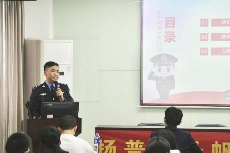 辅导报告上,南安市“理响武荣”政法宣讲员、南安市人民法院司法警察大队苏永坛以《扬普法长帆,享法治阳光》为题,结合真实案例深入浅出剖析了信息网络犯罪活动罪、套路贷、网络诈骗招聘广告诈骗等常见的犯罪手段,并就如何保护自身安全等问题提出具体防范措施,帮助师生树立起正确运用法律武器维护自身合法权益的意识。