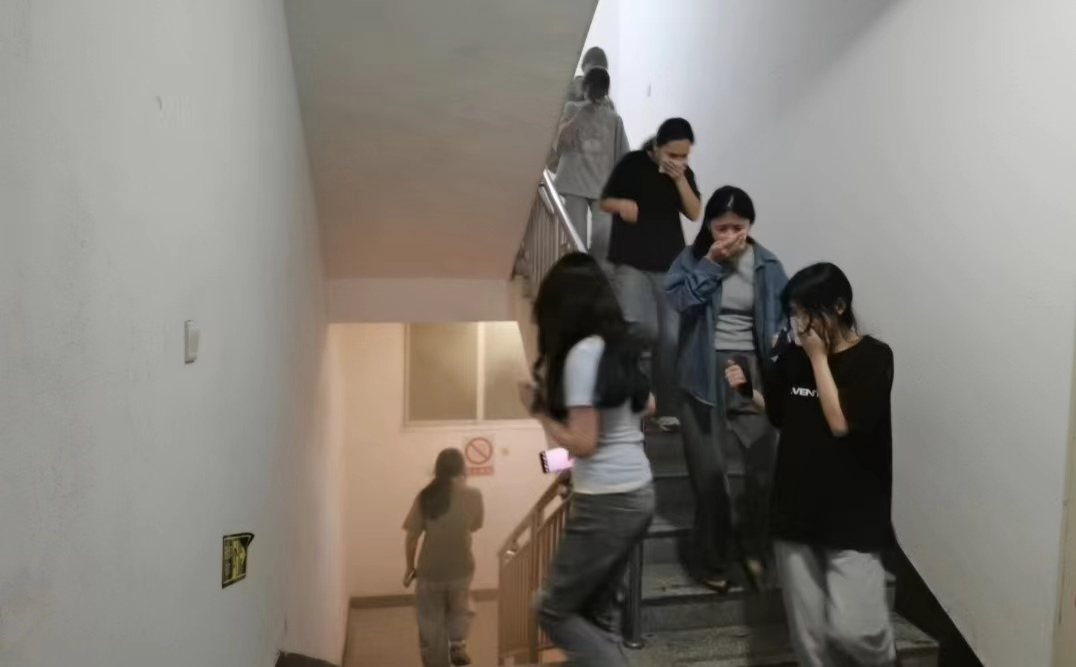 此次演练模拟学生在校住宿期间,宿舍熄灯断电后未及时关闭电吹风开关,次日凌晨宿舍恢复供电后,电吹风持续工作自燃引发火灾,保安巡逻发现火情,第一时间组织学生疏散避险,并拨打“119”报警。