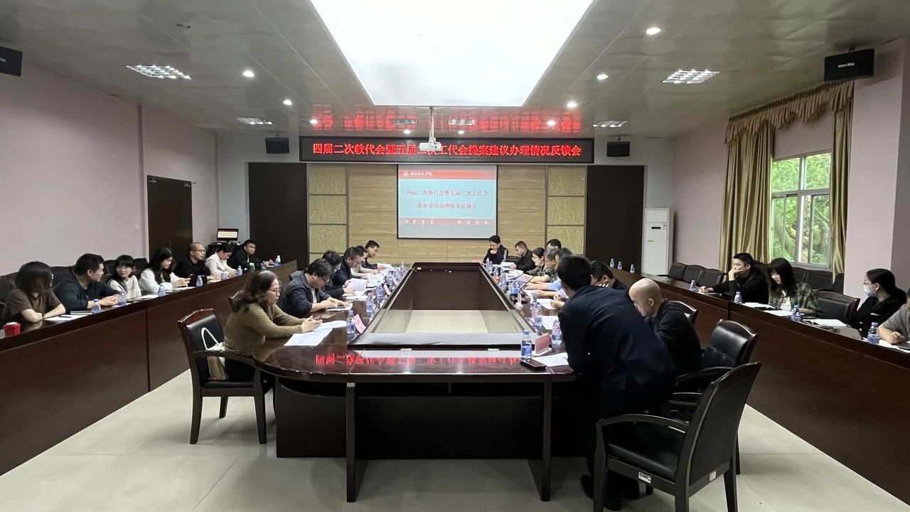 4月10日下午,校工会召开四届二次教代会暨五届二次工代会(以下简称“双代会”)提案建议办理情况反馈会。校常务副校长、校工会主席周勇军,相关职能部门负责人,各代表团团长、提案和建议人参加会议。