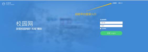 用户如已登录校园网,则可通过学校官网首页(https://www.bolcars.com)底部的“校园网自助”导航按钮访问校园网自助服务网站,如下图所示。在登录界面,输入校园网账号及密码,点击登录。